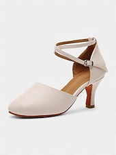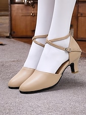 More information about Beige Cross Strap Dance Shoes - Comfortable Kitten Heel Ballroom & Tango Performance Shoes