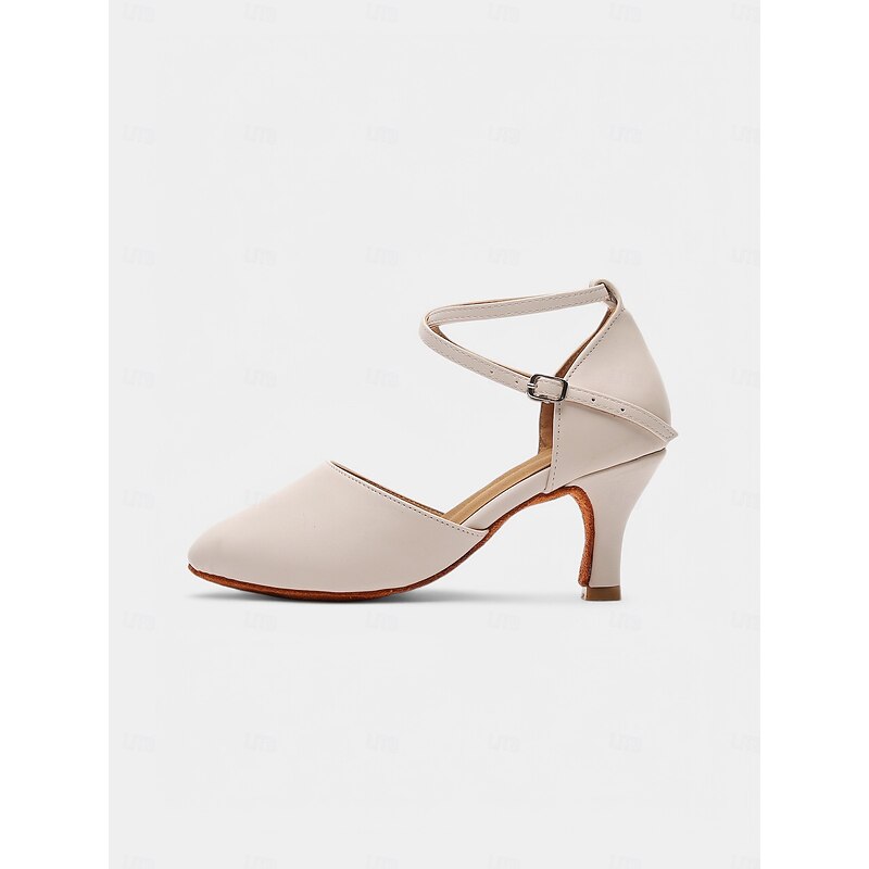 Beige Cross Strap Dance Shoes - Comfortable Kitten Heel Ballroom & Tango Performance Shoes 1