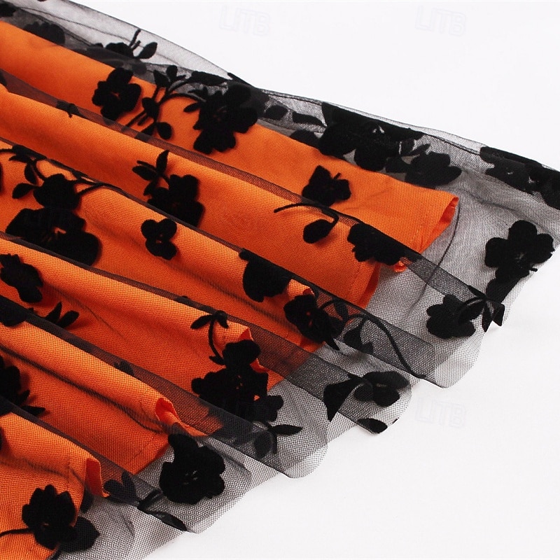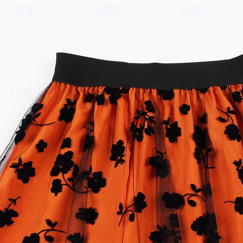 Women's Skirt Swing Fashion Casual Maxi Mid Rise Skirts Floral Sparkle Tulle Micro-elastic Vacation Halloween Red Orange Khaki Spring Polyester 15