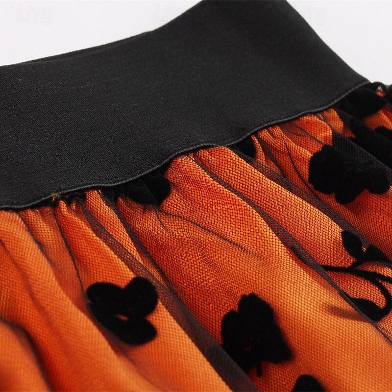 Women's Skirt Swing Fashion Casual Maxi Mid Rise Skirts Floral Sparkle Tulle Micro-elastic Vacation Halloween Red Orange Khaki Spring Polyester 11