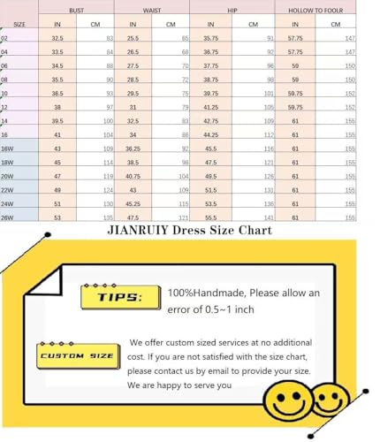 • ♥SIZE DETAILS:Please refer to our size chart in the product image section on the left. PLEASE NOT AMAZON SIZE CHART. We accept free customization service, if you want to customize the dress, Please provide us your measurements of the Bust, Waist, Hips and Hollow to Floor when you place the order. The dress will be made fit you perfect, please contact with us by email within 12 hours after you place order.