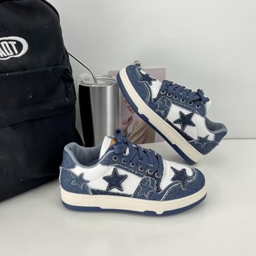 More information about Cute Star Sneakers PU Leather Stylish Lace Up Flat Skate Shoes for Women Casual Comfortable Non Slip Fashionable Streetwear Versatile Daily Wear