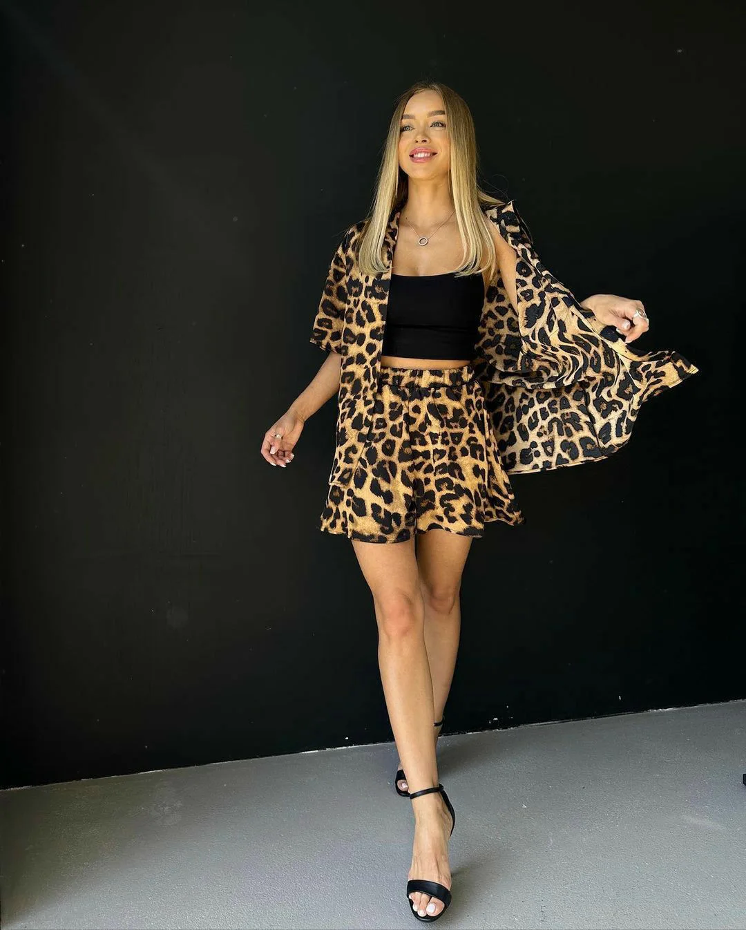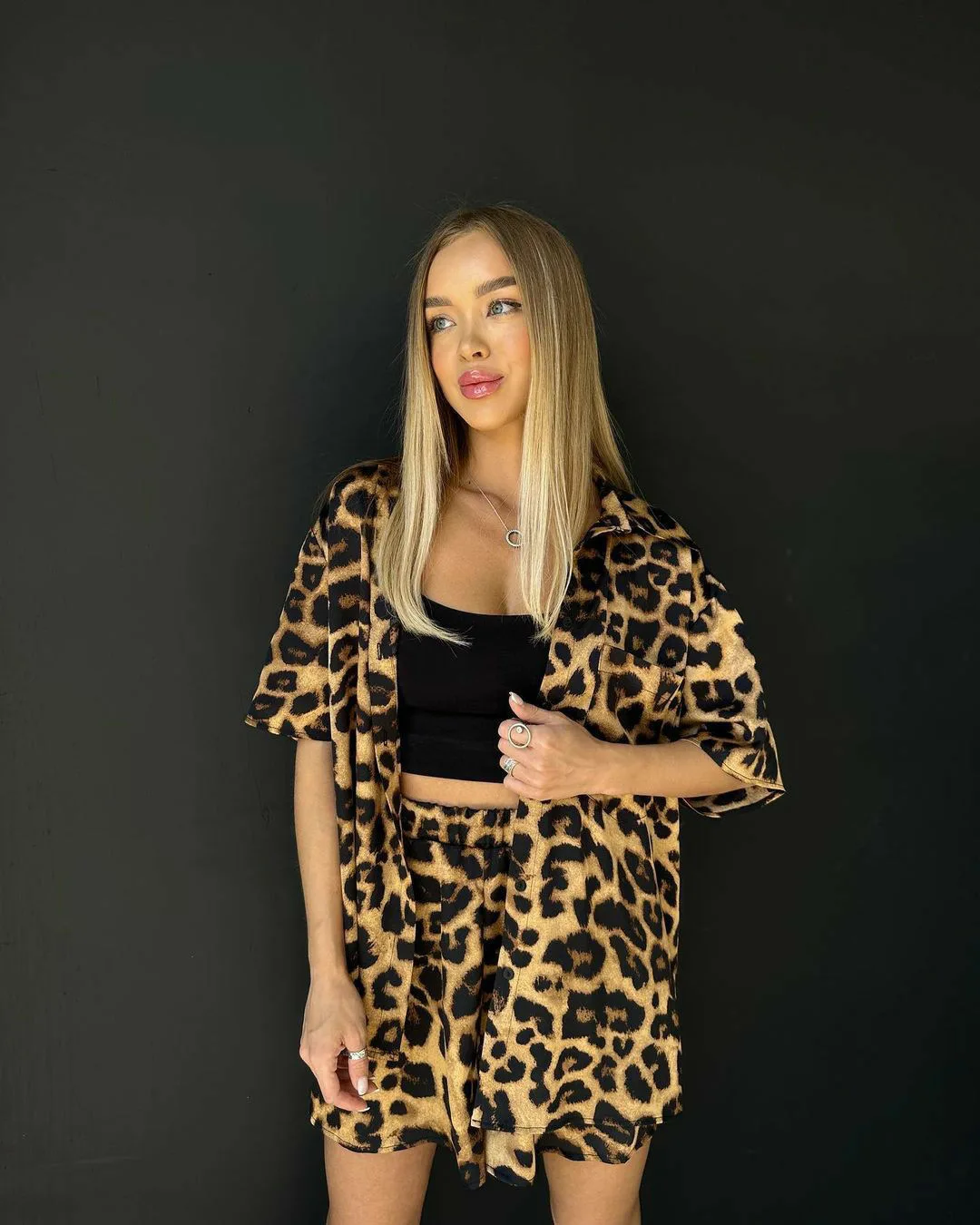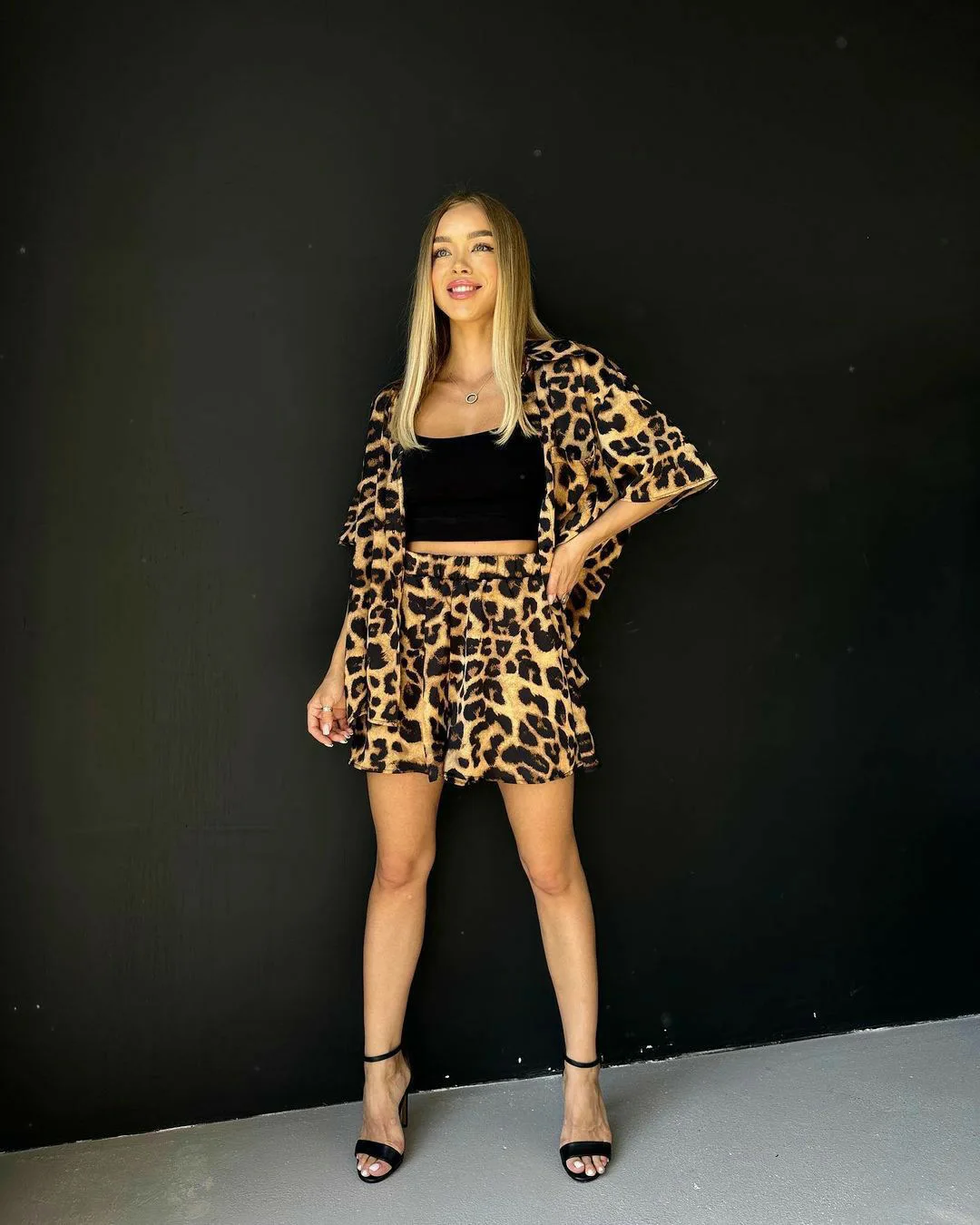 Summer Leopard Print Two Piece Set Fashion Commuting Set. S-2X