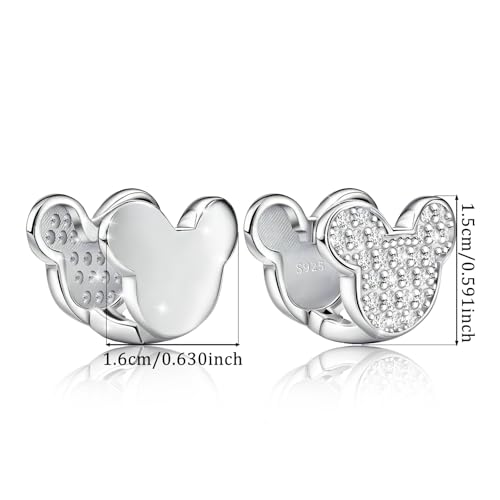 • ♥ Our sterling silver hoop earrings feature a double-sided mouse design with gleaming cubic zirconia on one side and glossy on the other. This allows the adorable mouse earrings to be worn in two ways, with the freedom to choose which side is the front.Cute and sweet mouse earrings are inspired by cartoon characters and represent playfulness, sweetness and childlike innocence.We are sure that this earring will bring great surprise and joy to your daughters, granddaughters, nieces, etc!Suitable for ages 5 +.