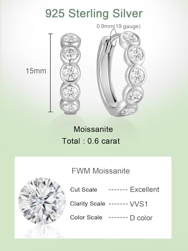 • 【Bezel Hoop Earrings】- These moissanite bezel earrings with a 15mm inner diameter are designed to be comfortable and lightweight, making them super comfortable for everyday wear. With a bezel setting adds an elegant touch, allows them to be stacked with other earrings and easily match with most of your outfits.