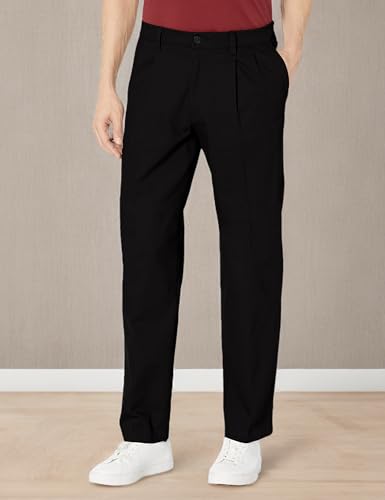 HOT ! Dockers Men's Classic Fit Signature Khaki Lux Cotton Stretch Pants-Pleated (Regular and Big & Tall), Black, 44W x 30L