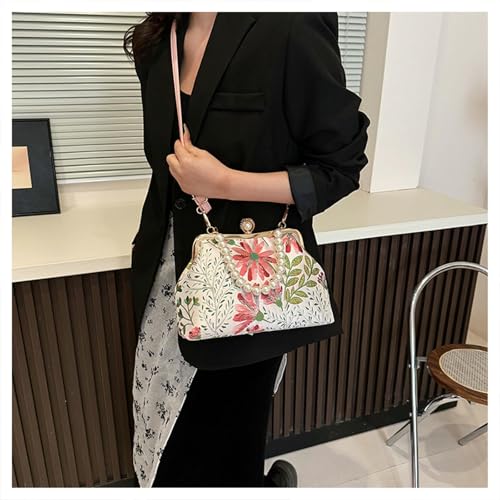 More information about Vintage Floral Embroidery Handbag, Pearl Chain Crossbody Bag Kiss Lock Purse Evening Bag for Women