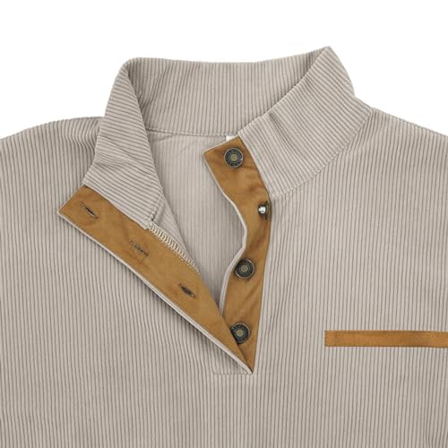 Men's Casual Corduroy Sweatshirt Long Sleeve Thermal Stand Collar Button Pullover Sweatshirts 4