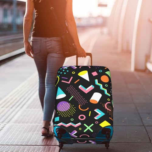 HOT ! 90s Geometric Style Travel Luggage Cover Elastic Suitcase Protector Washable Baggage Covers For Trunk Case Fits 22-24 Inch Luggage