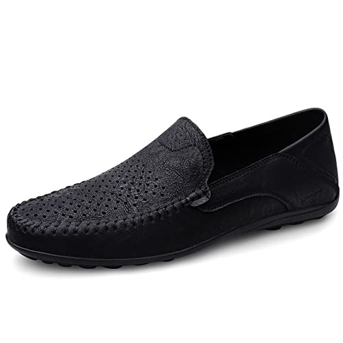 HOT ! Mens Loafers Shoe Moccasins Shoes Lightweight Breathable PU Leather Comfortable Anti-Slip Flexible Casual Fashion Slip On(Black,10 M US)
