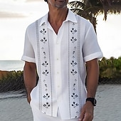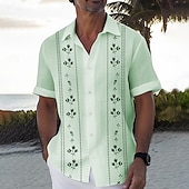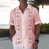 More information about Men's Tropical Plants Linen Shirt Summer Hawaiian Shirt Button Up Shirt Short Sleeve Hawaiian Resort Vacation Holiday Beach Wear Summer Spring Turndown 3D Print Collared Shirts White Pink Green