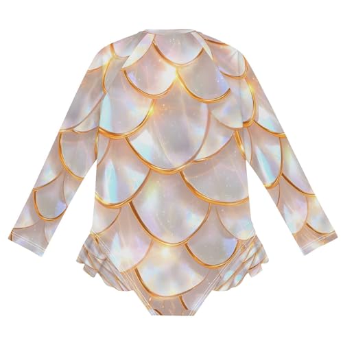 Toddler Girl Long Sleeve Ruffle Swimsuit One Piece Zipper Rash Guard Bathing Suit with UPF 50+ Platinum Dragon Scales 6