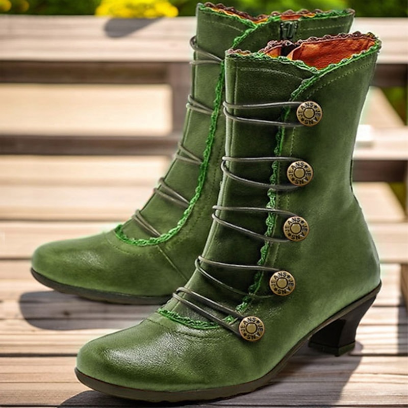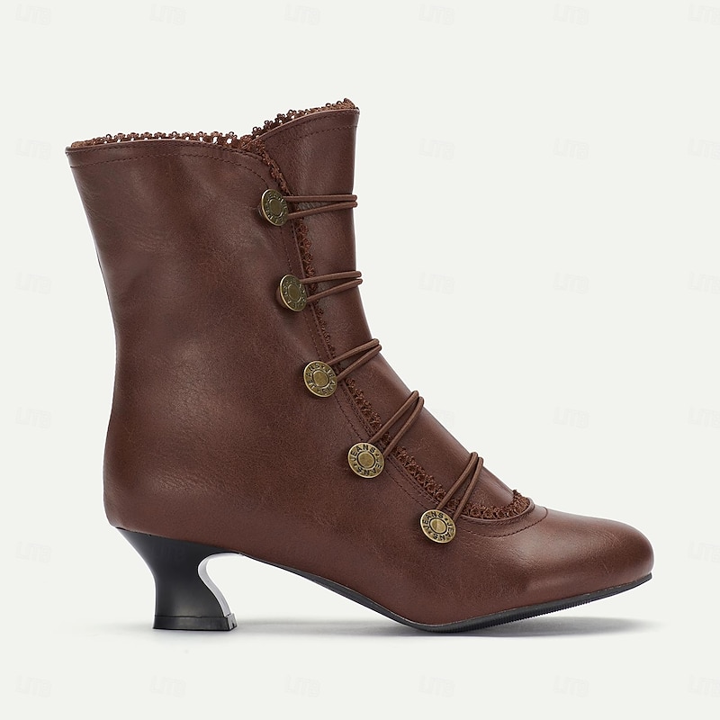 HOT ! Women's Brown Vintage Victorian Lace-Up Ankle Boots with Button Details and Mid Heel for Cosplay, Historical Reenactments, and Everyday Wear