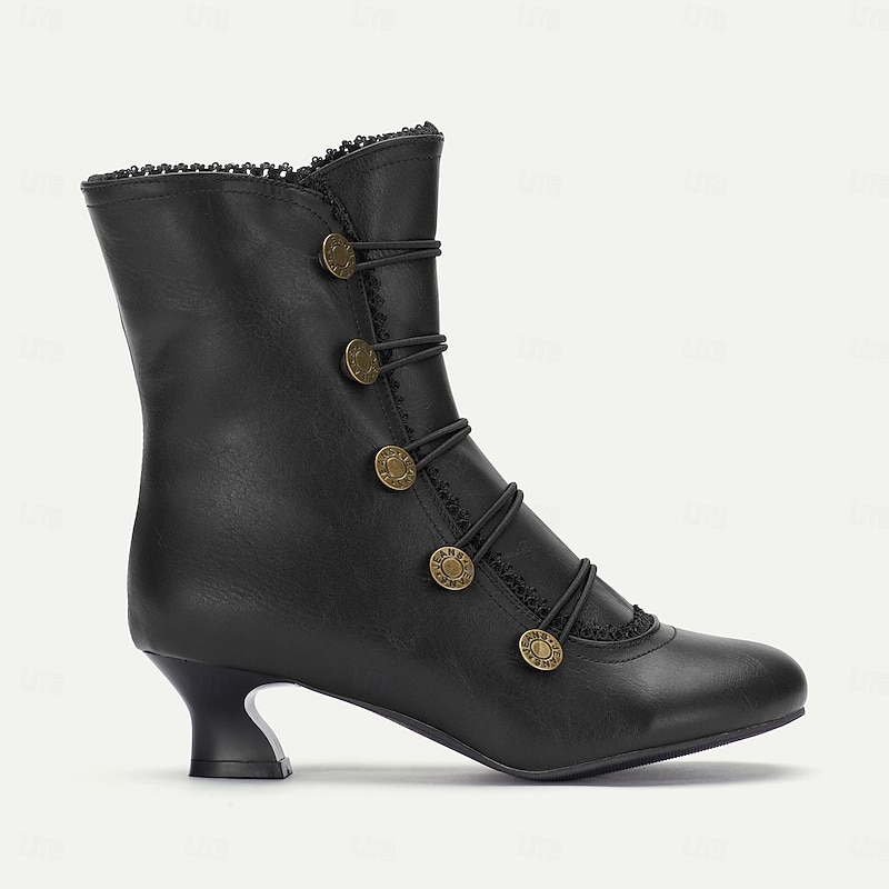 Women's Brown Vintage Victorian Lace-Up Ankle Boots with Button Details and Mid Heel for Cosplay, Historical Reenactments, and Everyday Wear 4
