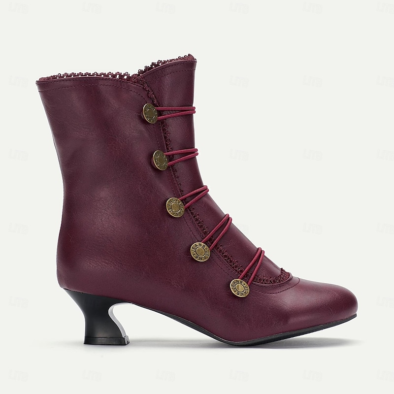 More information about Women's Brown Vintage Victorian Lace-Up Ankle Boots with Button Details and Mid Heel for Cosplay, Historical Reenactments, and Everyday Wear