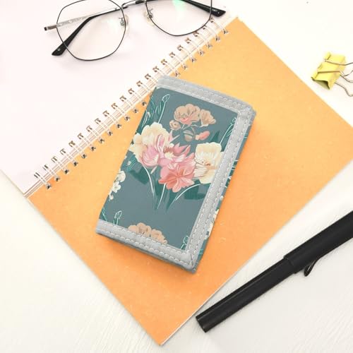 Flowers Elegant Gray - Blue Kids Wallet for Boys Girls Trifold Sport Outdoor Wallets for Children Youth Teen Wallet with Zippered Coin Pockets Card Holders Novelty Wallets with Magic Sticker 1