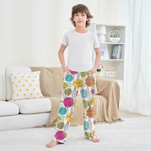 ZZXXB Fish and Polka Dot Boys Long Pants Soft Trousers Elastic Waist Kids Lounge Bottoms with Pockets S-XL 1
