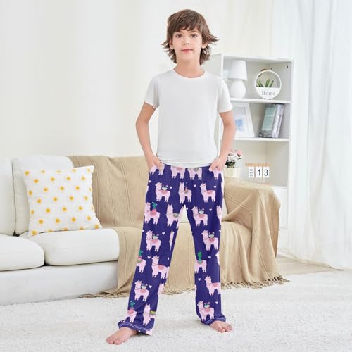 HOT ! Llama Cactus Love Boys Long Pants Soft Trousers Elastic Waist Kids Lounge Bottoms with Pockets S-XL
