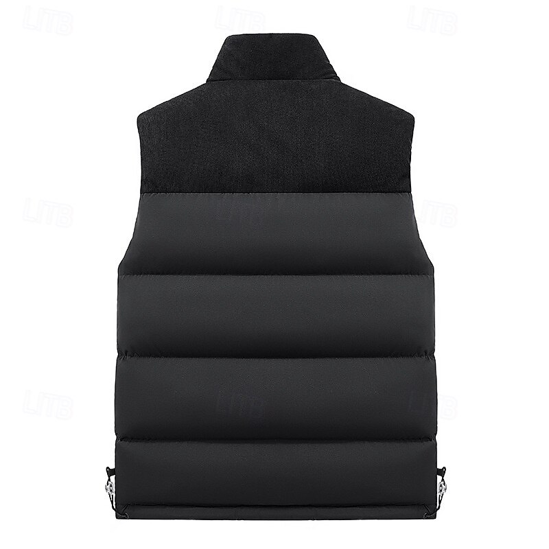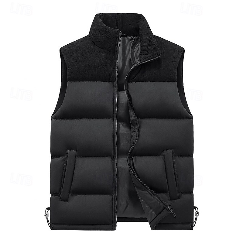 More information about Men's Down Vest Puffer Vest Vest Gilet Daily Date Vacation Fashion Casual Fall & Winter Patchwork Pocket Polyester Warm Comfortable Plain Pocket Zipper Stand Collar Regular Fit Black Ivory Purple