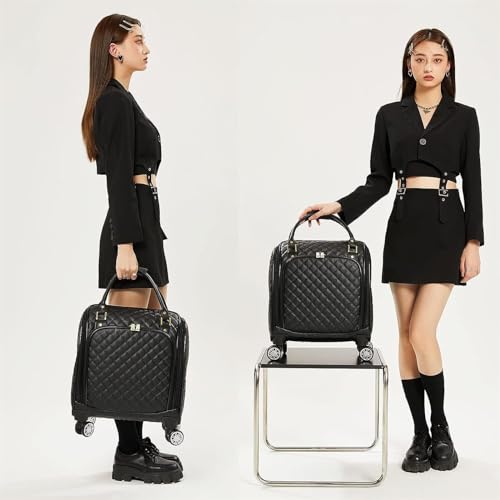 HOT ! Durable Suitcase for Women Leather Softside Underseat Carry On Suitcases Travel Luggage With Spinner Wheels Retro Suit Case (Color : Black, Size : 16inch)