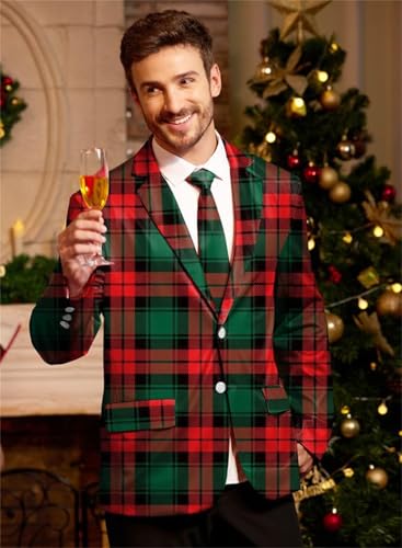 Ugly Christmas Suit Jacket for Men Holiday Vintage Plaid Tuxedo Blazer for Dinner,Prom,Wedding 7
