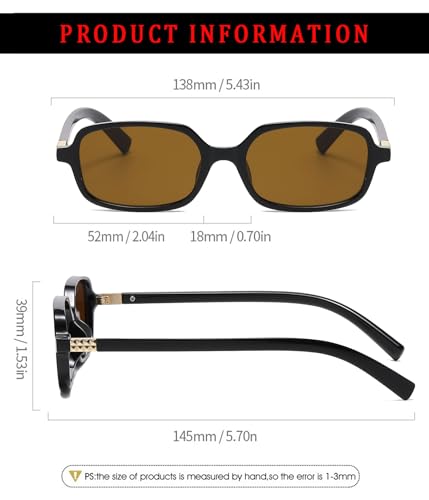 • SMALL RECTANGULAR FRAME: Classic 90s narrow rectangular frame with side metal panel design, paired with any fashionable clothing, Simple but yet so eye-catching that guarantees you are an extremely cool look on all your stylish outings