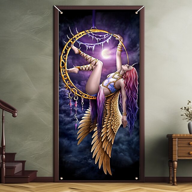 HOT ! Halloween Door Covers Aerial Angel by Sarah Richter Door Tapestry Door Curtain Decoration Backdrop Door Banner for Front Door Farmhouse Holiday Party Indoor Outdoor Decor Supplies