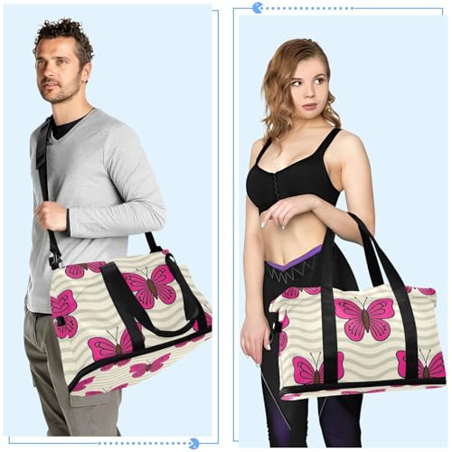Wave Pattern Animal Butterflies Magenta Luggage Travel Bag Shoulder Weekender Overnight Bag with Adjustable Strap for Trip Foldable 7