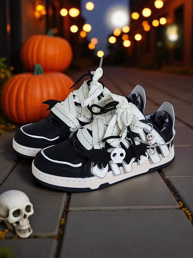 $64.99 - Women's Black and White Halloween Skull Lace-Up Sneakers with Bat Charms – Gothic Streetwear Style for Festival Nights and Costume Parties 2025. Shop for cheap Shoes For Women online? Buy at lightinthebox.com on sale today!