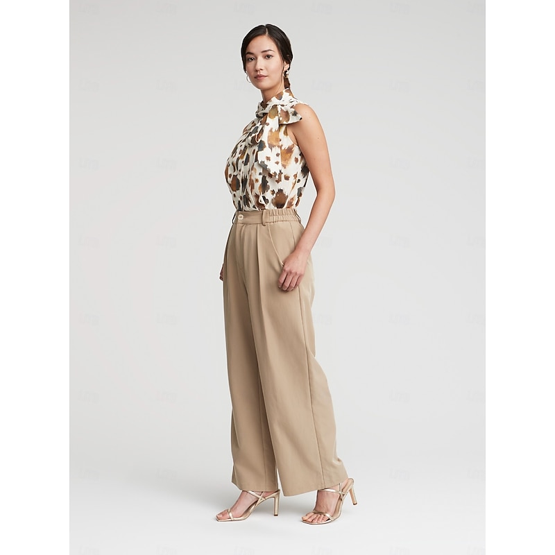 More information about Sleeveless Pleated Button Front Bow Neck Blouse