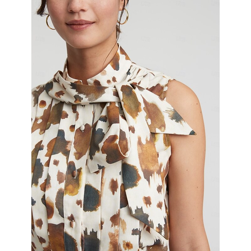 Sleeveless Pleated Button Front Bow Neck Blouse 9
