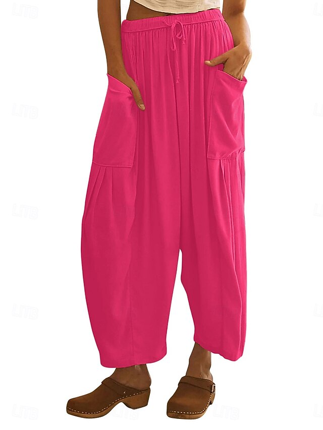Women's Cotton Linen Shorts Linen-Inspired Pants Cotton Linen Pants Fashion Streetwear Ankle-Length Medium Waist Plain Pocket Elastic Waistband Comfy Soft Comfortable Micro-elastic Outdoor Street 17