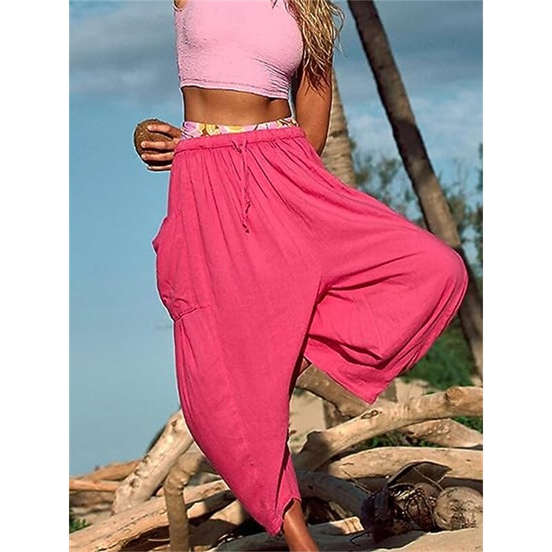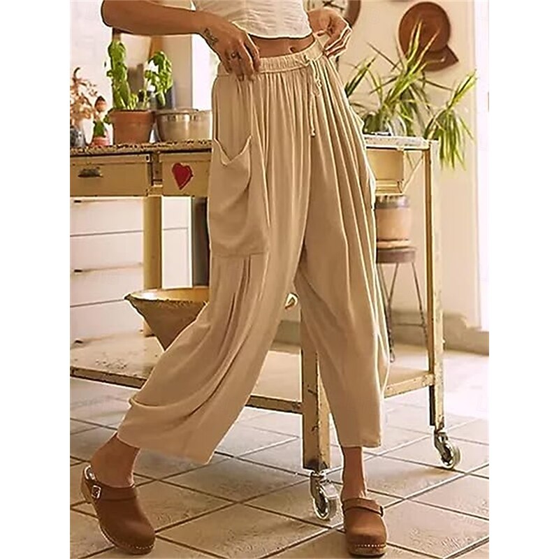 Women's Cotton Linen Shorts Linen-Inspired Pants Cotton Linen Pants Fashion Streetwear Ankle-Length Medium Waist Plain Pocket Elastic Waistband Comfy Soft Comfortable Micro-elastic Outdoor Street 13