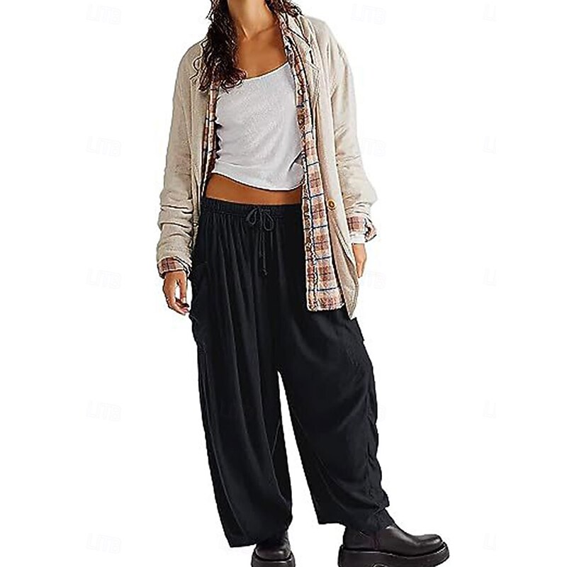More information about Women's Cotton Linen Shorts Linen-Inspired Pants Cotton Linen Pants Fashion Streetwear Ankle-Length Medium Waist Plain Pocket Elastic Waistband Comfy Soft Comfortable Micro-elastic Outdoor Street
