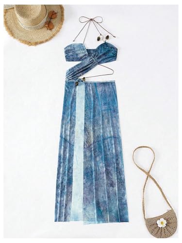 • Features: Tie back, halter, ring linked, backless bikini coverup dress for women