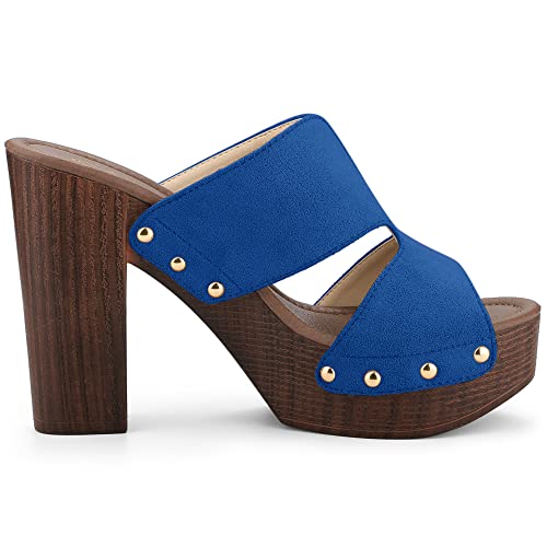 Allegra K Women's Faux Suede Platform High Block Heel Slides Sandals 5