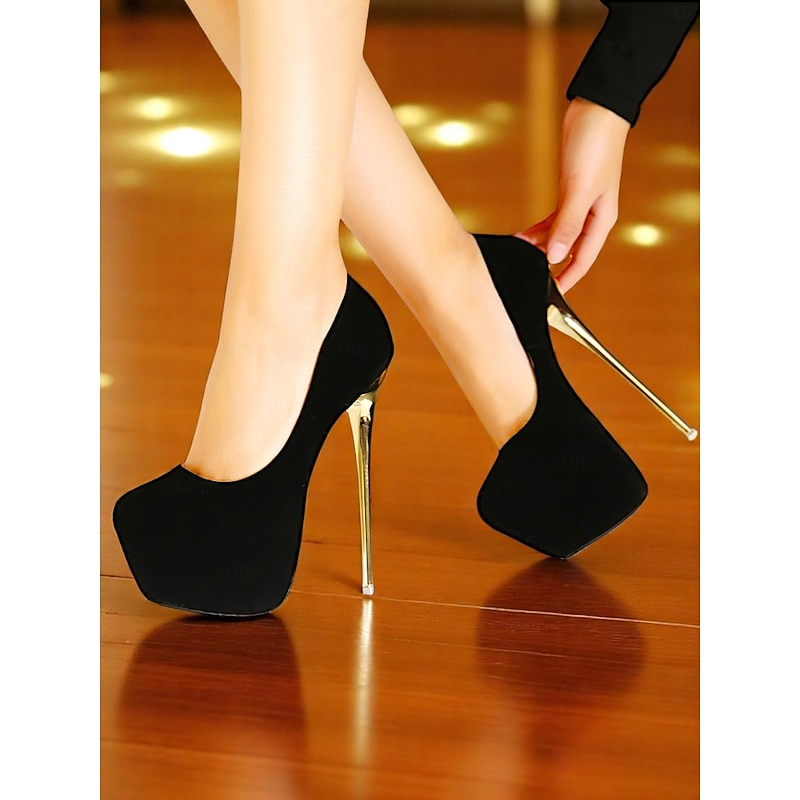 More information about Women's Red Suede Platform Heels with Metallic Stiletto and Waterproof Platform for Nightlife Parties