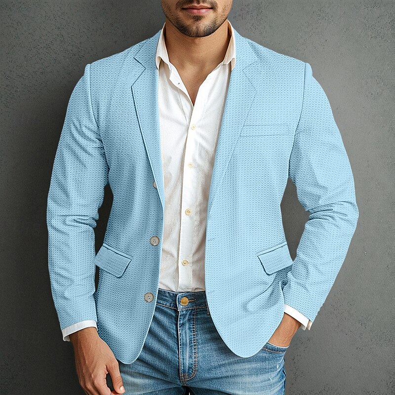 : Crafted from premium waffle fabric, this men's blazer offers a unique texture and breathable comfort, perfect for both transitional spring days and crisp fall evenings.