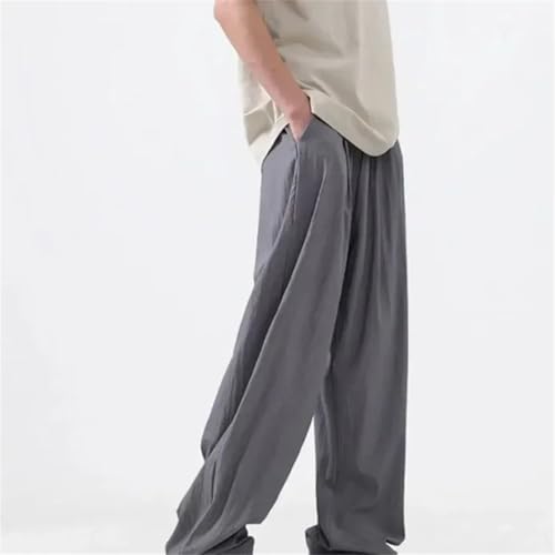 Kelsiop Men's Casual Straight Ice Silk Pants Summer Wide Cool Baggy Pocket Cooling Loose Thin Plus Size 7