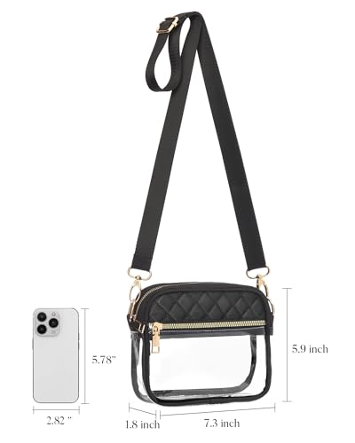 • Perfect Stadium Size: Save time with a clear purse for stadium events. This clear purse measures 7.3 x 5.9 x 1.8 inches. Glide through security checks with ease! Our clear purses for women stadium crossbody have a spacious capacity that can hold mobile phones, sunglasses, keys, and other small items, meeting all your needs.