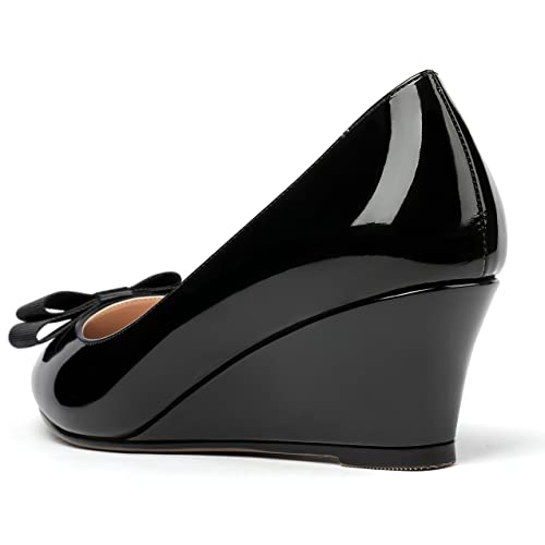 • GLAMOUROUS DESIGN: Standing on a wedge heel of 2 inch, this timeless pointed toe bow pumps is neatly designed with pure proportions and thus wearable with any outfit from skinny pants to cocktail dresses.