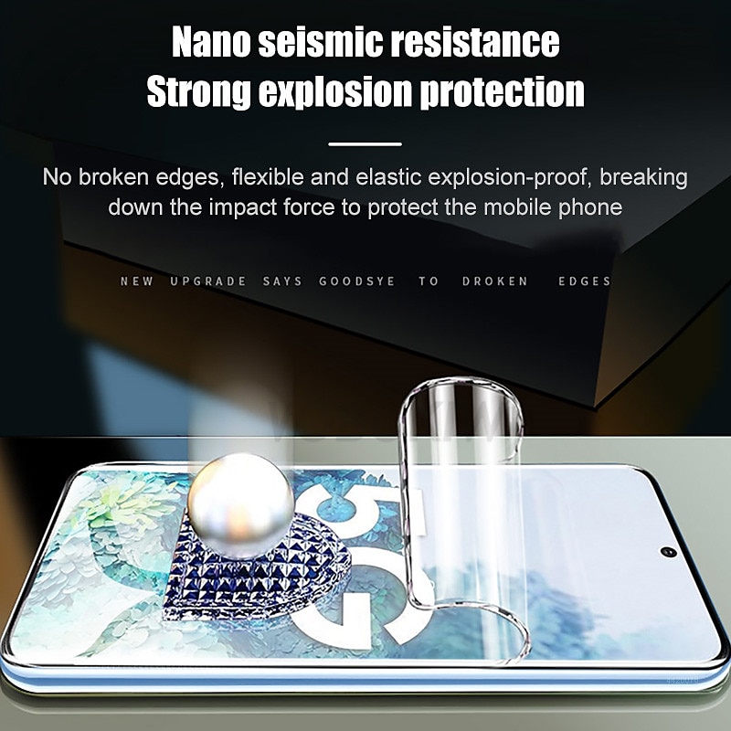 Highlights Product Selling Points: 1. High Protection: The new Hydrogel soft film provides excellent protection for your screen. 2. Stain Prevention: Hydrophobic and Oleophobic coating prevents your phone from stains such as oil and fingerprints. 3. HD Viewing Experience: The super thin and high transparency design guarantees a high-definition viewing experience. 4. High Sensitivity: The film offers high sensitivity and response, just like the original screen. 5. Scratch Recovery: Scratches on the screen will naturally recover, with faster recovery for more subtle scratches. 6. Increased Screen Sturdiness: Significantly increases the screen's sturdiness, eliminating worries about fragile screens during daily use. 7. Suitable for Curved Screens: Hydrogel soft film is the most suitable protective film available on the market for curved screens. Package Includes: - 3 pieces of hydrogel soft film for Samsung.