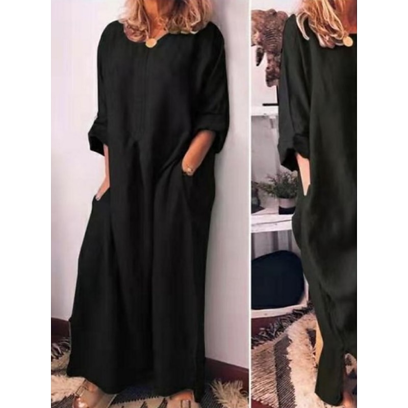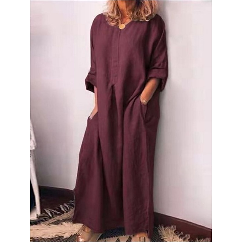 Highlights The Women's Casual Cotton Linen Shift Maxi Dress is the epitome of modern elegance for 2023 Crafted from soft durable bamboo fabric this regular fit dress features a crew neck long sleeves and a convenient pocket Perfect for daily wear or vacation outings this dress offers micro-elasticity for comfort The non-print plain design emphasizes a sleek contemporary feel Machine washable for easy care Colors available in black yellow and wine