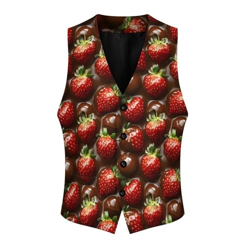 Chocolate Covered Strawberry Suit Vest for Men Waistcoat Dressy V Neck Button Down Sleeveless Business Jacket Coat 1