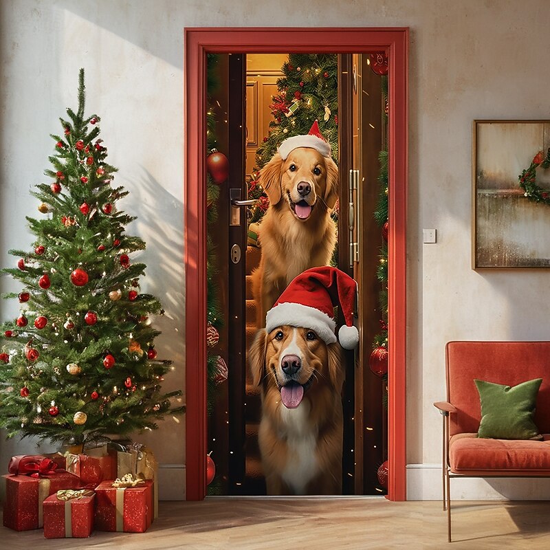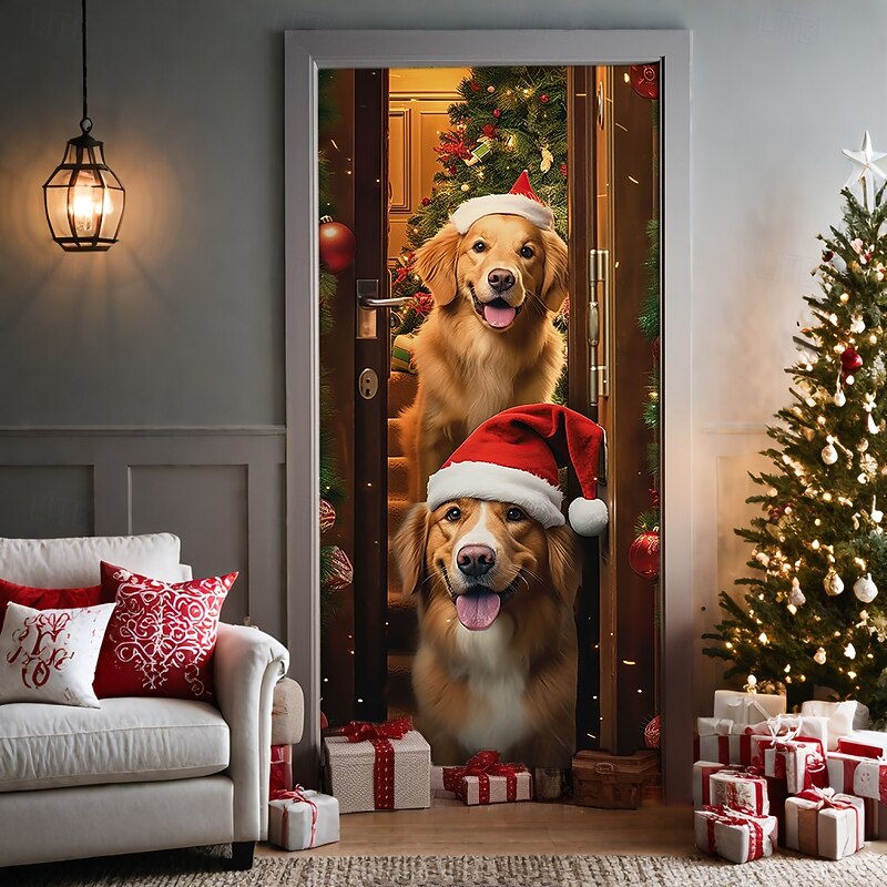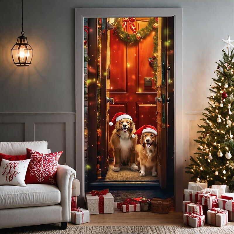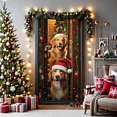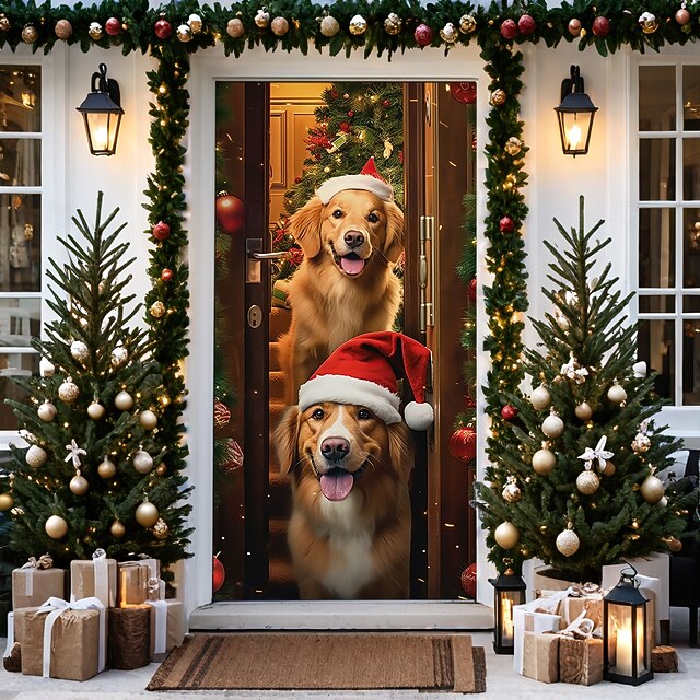 HOT ! Christmas Door Decorations Door Covers Xmas Dogs Door Tapestry Door Curtain Decoration Backdrop Door Banner for Front Door Farmhouse Holiday Party Decor Supplies Indoor/Outdoor