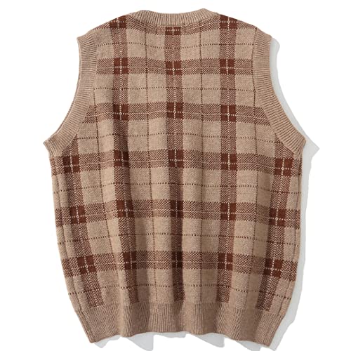 Autumn Streetwear Men Knitted Waistcoat Sweater Vest Vintage Lattice Sleeveless Vest 6
