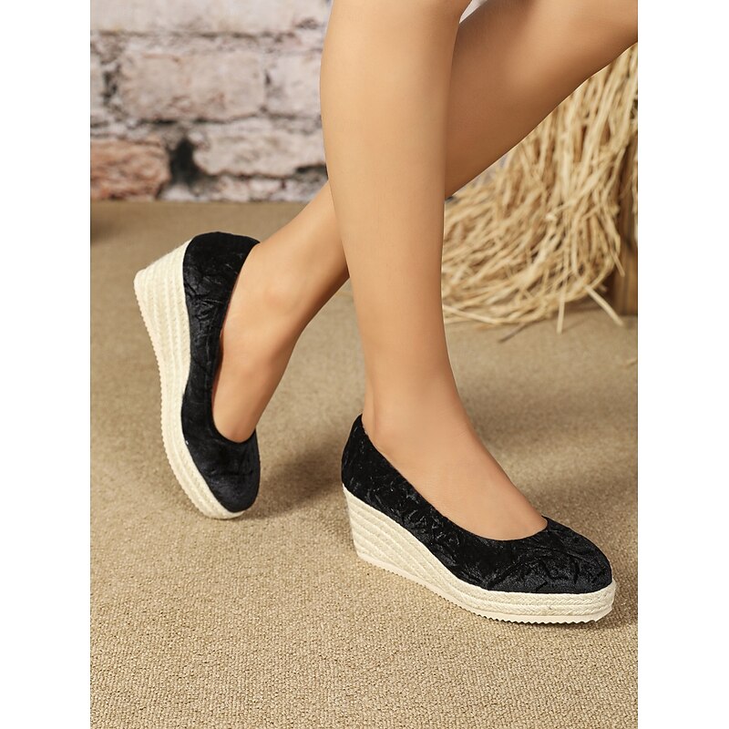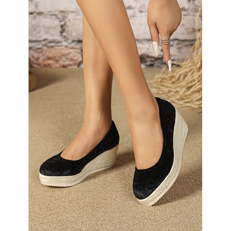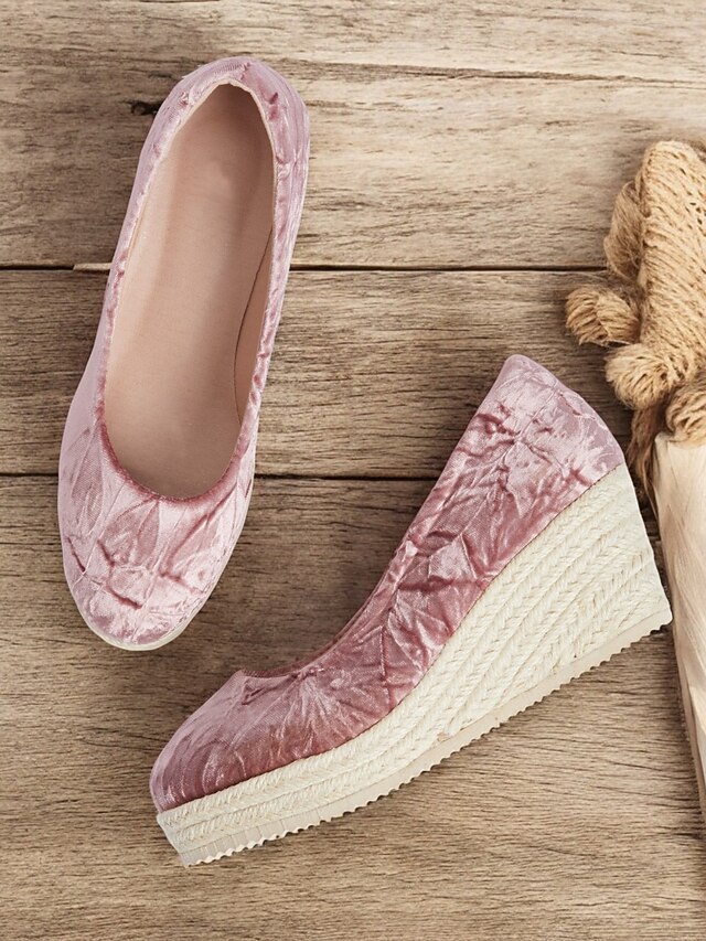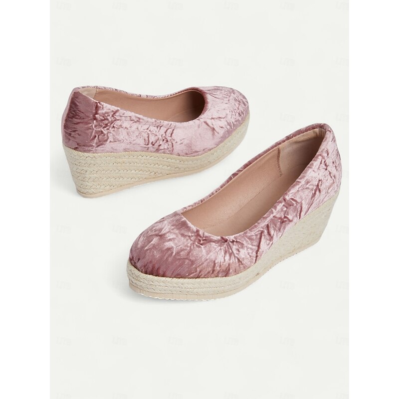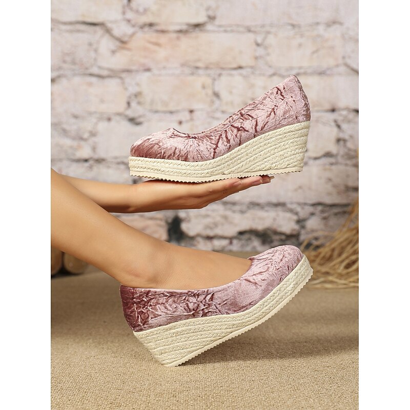 HOT ! Women's Pink Velvet Espadrille Wedge Shoes, Casual Slip-On Platform Flats for Summer and Daily Wear