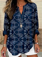 More information about Women's Shirt Floral Vintage Daily Casual Long Sleeve V Neck Regular Tops Daily Holiday Buttons Print Black Navy Blue Spring Fall