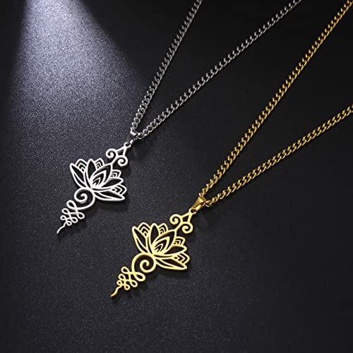 Dreamtimes Lotus Flower Pendant Necklace for Women Yoga Healing Charms Unalome Symbol Amulet Stainless Steel Jewelry Lotus Flower Necklace Buddha Yoga Necklace 2