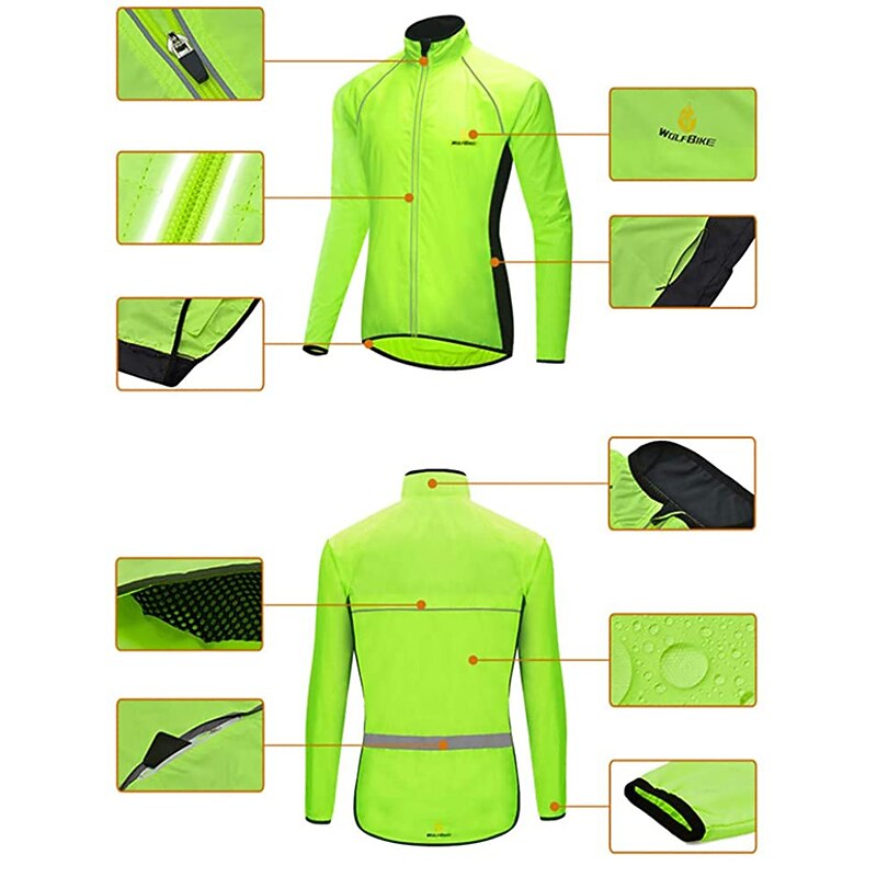 Highlights - Enjoy cycling in the rainy day with our super light and water-repellent winter cycling jacket. - The breathable mesh fabric on the back and breathable window keep you cool throughout your ride. - Stay visible and safe with reflective lines on the shoulder and back. No need to wear a reflective vest when running in the dark. - Keep your essentials safe in the zipper pockets on the back and sides. The elastic cuffs and stretchy design keep the wind and rain out. - Designed for advanced mountain bike MTB and road bike cycling enthusiasts who demand waterproof, windproof, lightweight and breathable gear.